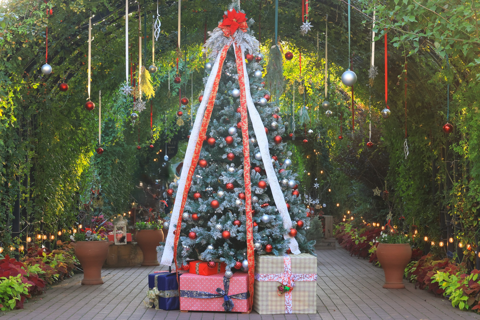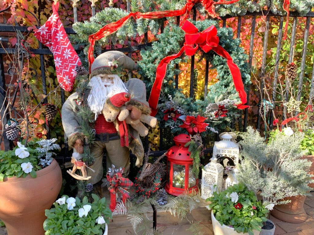 秋冬のガーデンでクリスマス気分を味わうディスプレイ